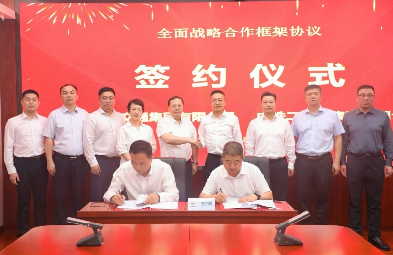 在吳秉軍、雷位冰、苗文懷的共同見證下,馬運康和劉文武代表雙方企業(yè)簽訂戰(zhàn)略合作協(xié)議。